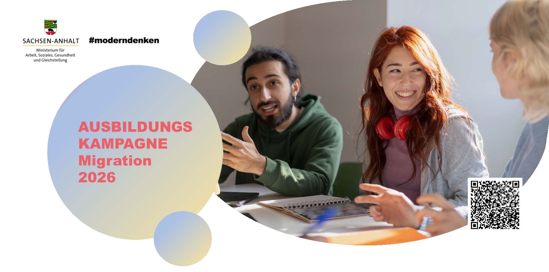 Die Ausbildungskampagne Migration 2026 ist eine Initiative des Ministeriums für Arbeit, Soziales, Gesundheit und Gleichstellung Sachsen-Anhalt mit starken Partner:innen, unter anderem uns als WelcomeCenter Sachsen-Anhalt und der damit verbundenen Landesinitiative Fachkraft im Fokus.